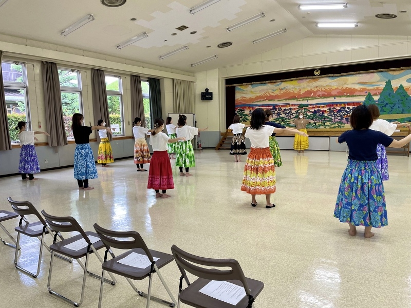 7月12日(火) 藤久保小学校PTA企画の「家庭教育学習」講座の依頼を受けKANA先生にフラダンス講師として行ってもらいました🌺